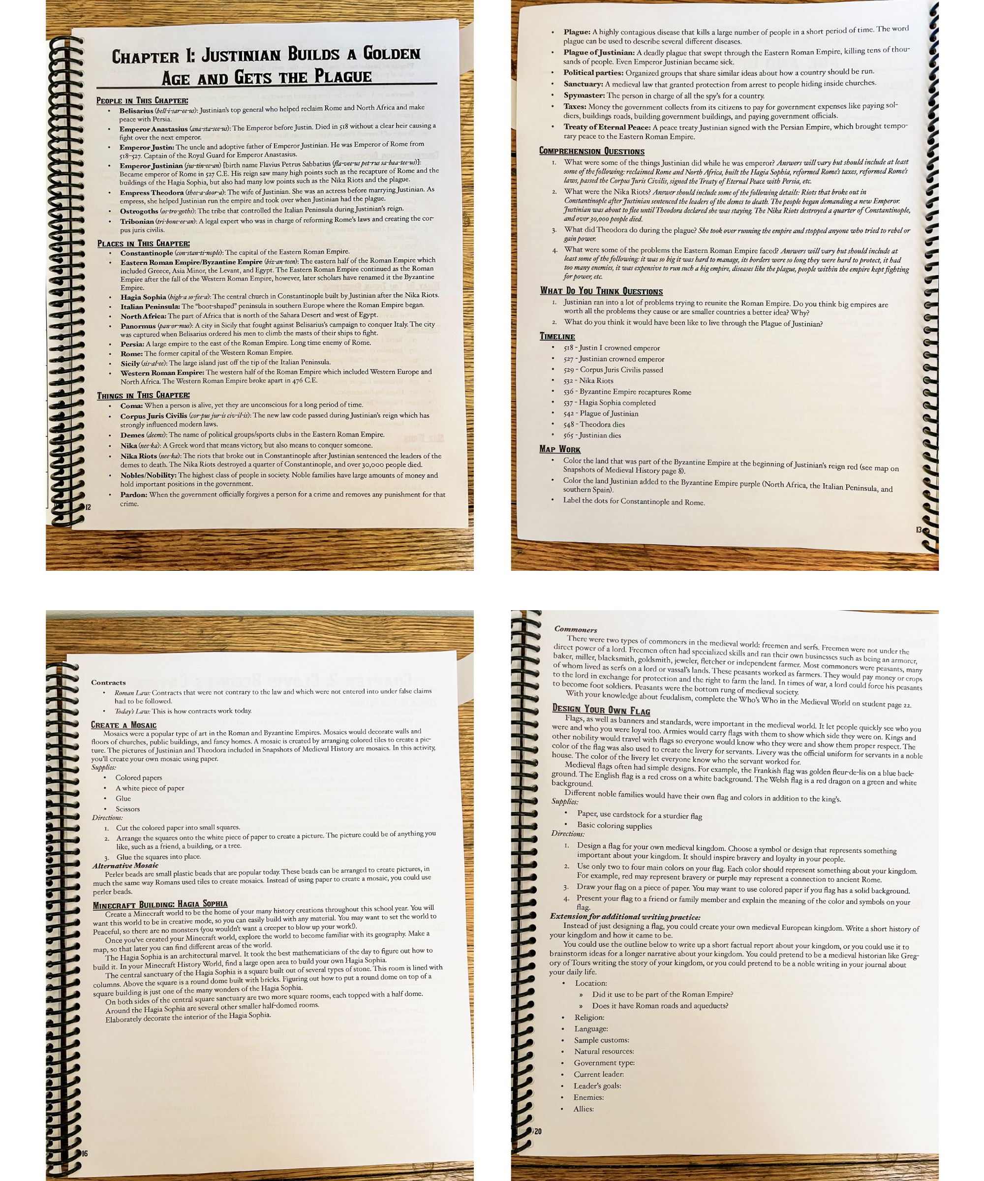 These examples from Curiosity Chronicles demonstrate a wide range of student output including discussion questions, projects, and writing activities.