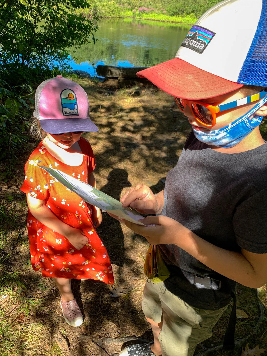 Google the place you want to "hike" and print off the map (even if that's just a screenshot of a map or a printed picture of the trailhead). Kids love maps and showing the way. Something to carry treasure in: I try not to be the one holding all the acorns, leaves, walnuts, shells, etc. I teach the kids "leave no trace," but I also want to facilitate a love for nature, and part of that is allowing the kids to have a nature collection (within reason).
