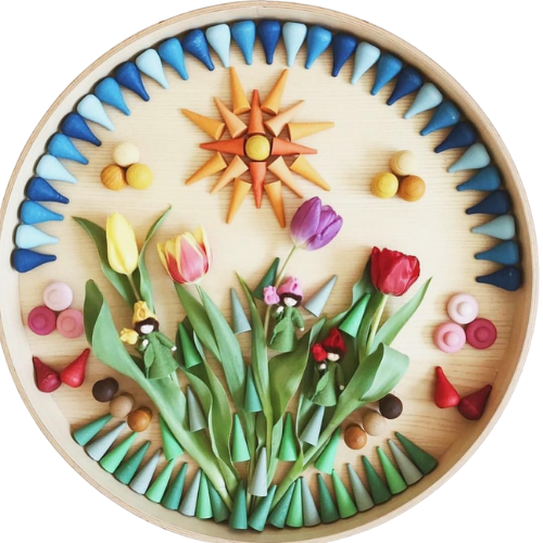 My kiddos like making designs with loose parts. For more on loose parts, click here.