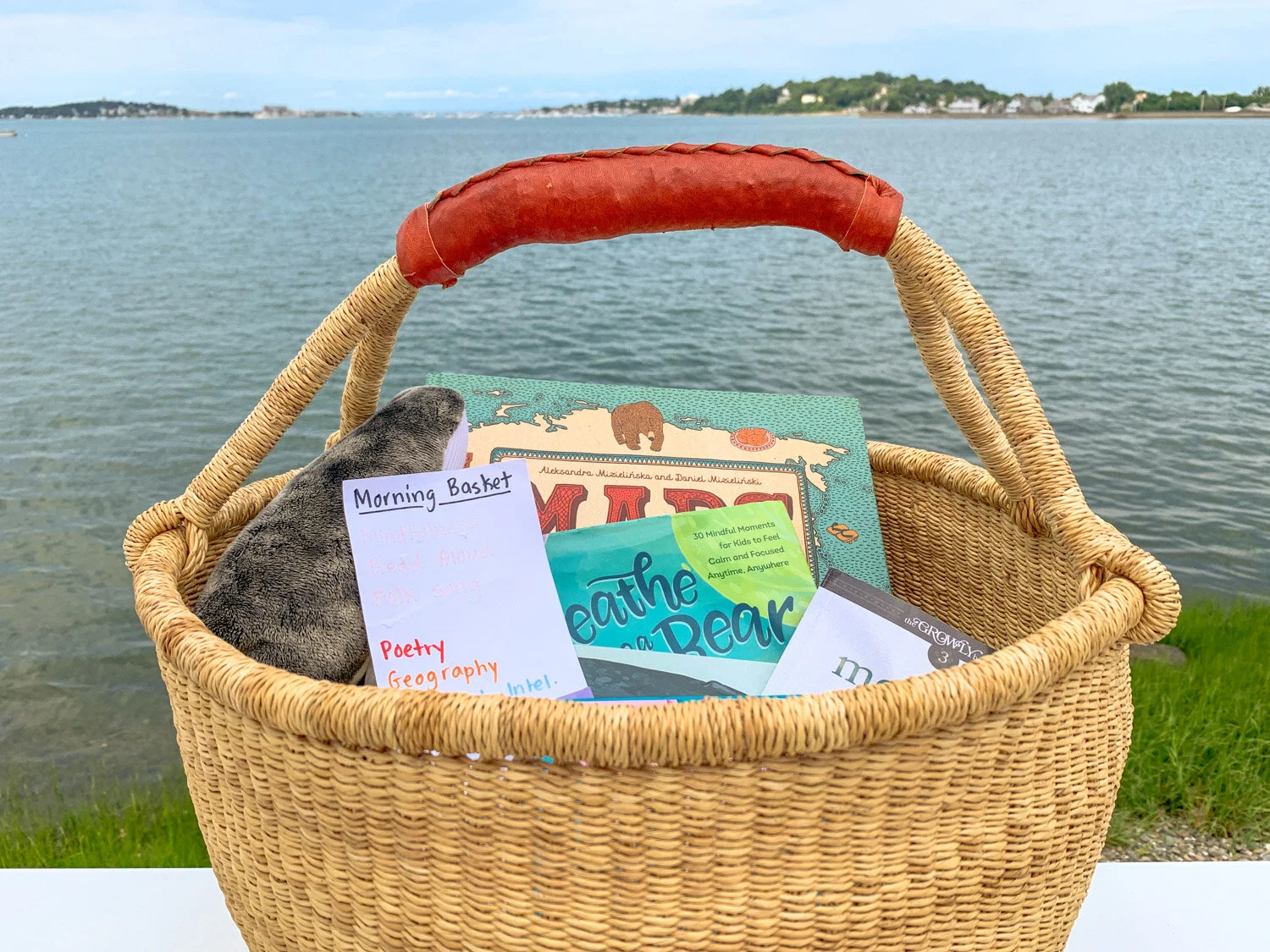 Let’s chat morning basket (or afternoon/bedtime/whenever basket/tub/bin/box). Morning basket is big in the homeschool world. Similar to morning time or circle time, it’s a great way of starting your homeschool day with connection.