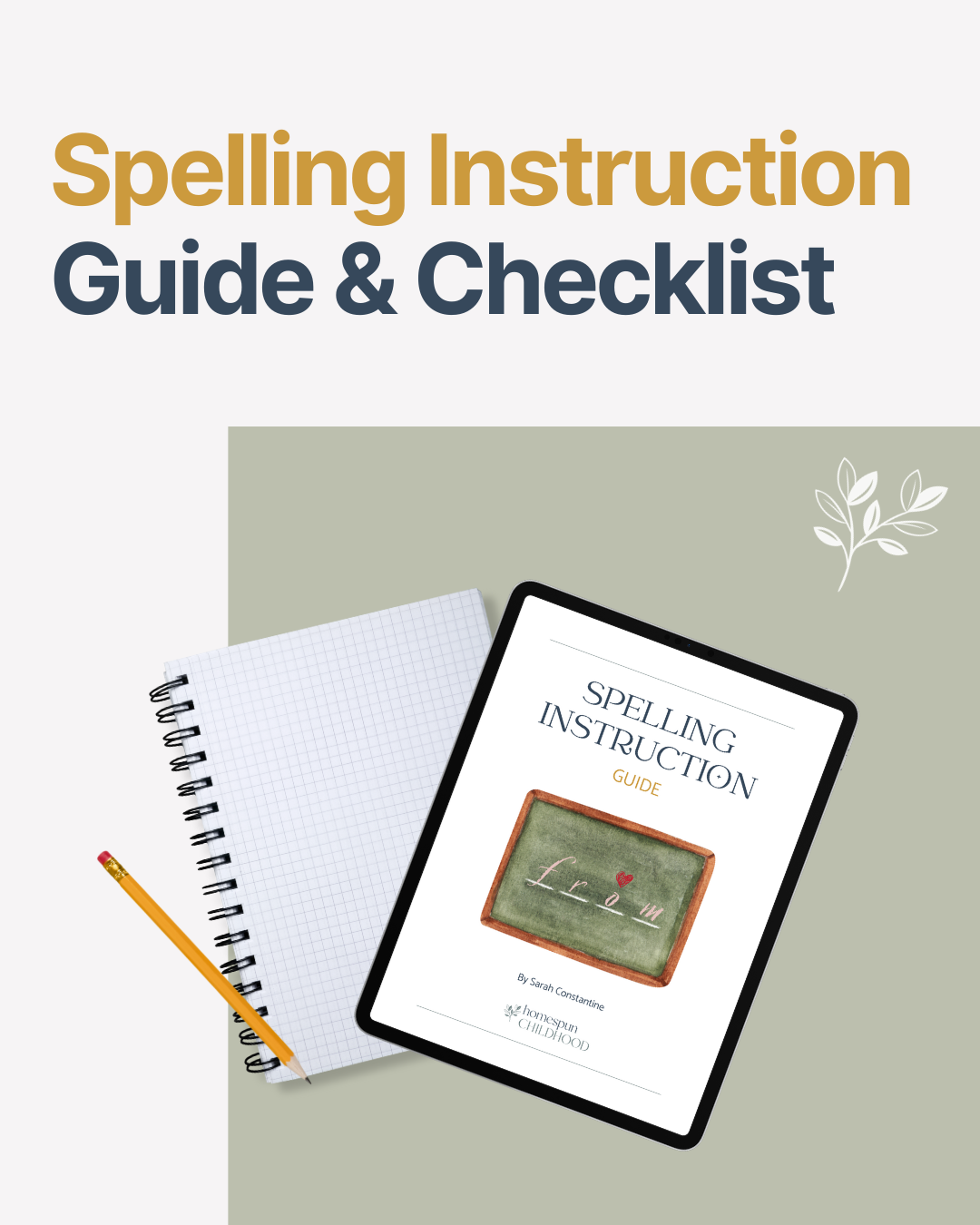 Check out my Spelling Instruction Guide and Checklist. I created this guide after years of working with homeschool parents in consulting sessions to take the pressure off both you and your child.